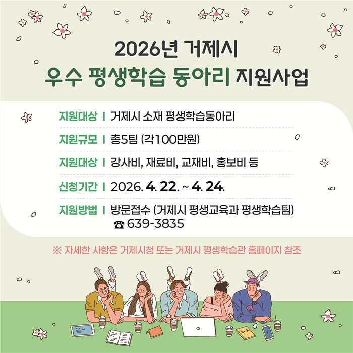 [½Ã»çÄÚ¸®¾ÆÀú³Î=Á¤Á¾¹Î ¼±ÀÓ±âÀÚ] °ÅÁ¦½Ã°¡ Áö¿ª»çȸ ÇнÀ°øµ¿Ã¼ Çü¼º°ú ¹è¿ò¹®È¸¦ Á¶¼ºÇϱâ À§ÇØ '2026³â °ÅÁ¦½Ã ¿ì¼ö Æò»ýÇнÀ µ¿¾Æ¸® Áö¿ø»ç¾÷'À» ½Ç½ÃÇÑ´Ù.
