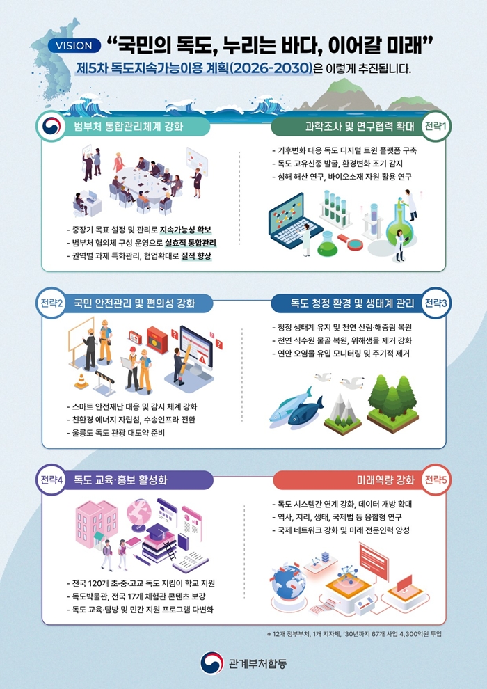 ¢º Á¦5Â÷(2026 ~ 2030³â) µ¶µµÀÇ Áö¼Ó°¡´ÉÇÑ ÀÌ¿ëÀ» À§ÇÑ ±âº»°èȹ - 12°³ÀÇ Á¤ºÎºÎó, °æºÏµµ 2030³â±îÁö 67°³ »ç¾÷, ¾à 4,339¾ï ¿ø(°æºÏµµ: 20°³ »ç¾÷, ¾à 764¾ï ¿ø)