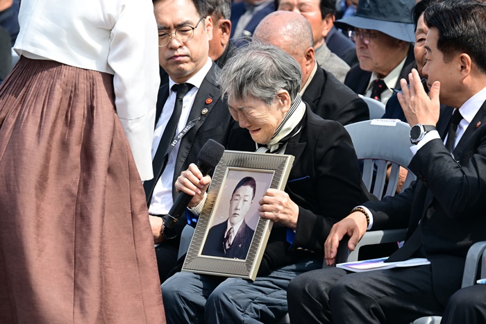 | 3ÀÏ ¿ÀÀü Á¦Áֽà ºÀ°³µ¿ Á¦ÁÖ4·3ÆòȰø¿ø¿¡¼ ¿¸° Á¦78ÁÖ³â Á¦ÁÖ4·3Èñ»ýÀÚÃß³ä½Ä¿¡¼ °¡Á·°ü°è Á¤Á¤ ù »ç·Ê ´ç»çÀÚÀÎ °í°è¼ø ÇҸӴϰ¡ ÀÚ½ÅÀÇ »ç¿¬ÀÌ ¼Ò°³µÇÀÚ ¿À¿Çϰí ÀÖ´Ù. /¿¬ÇÕ´º½º |