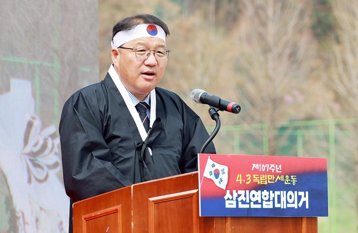 [½Ã»çÄÚ¸®¾ÆÀú³Î=Á¤Á¾¹Î ¼±ÀÓ±âÀÚ] â¿ø½Ã´Â Áö³ 3ÀÏ ¸¶»êÇÕÆ÷±¸ ÁøºÏ¸é ÆÈÀÇ»ç âÀÇž ÀÏ¿ø¿¡¼ À¯Á·, ½Ã¹Î, Çлý 200¿© ¸íÀÌ Âü¼®ÇÑ °¡¿îµ¥ ‘107ÁÖ³â 4‧3µ¶¸³¸¸¼¼¿îµ¿ »ïÁø¿¬ÇÕ´ëÀǰŒ ±â³äÇà»ç¸¦ °³ÃÖÇß´Ù.