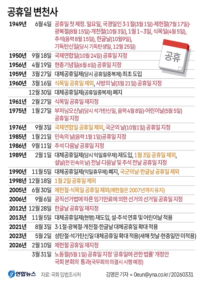 [½Ã»çÄÚ¸®¾ÆÀú³Î=±èÈñ¿µ ±âÀÚ] ¿ÃÇØ 5¿ù 1ÀϺÎÅÍ ³ëµ¿ÀýÀÌ '¹ýÁ¤ °øÈÞÀÏ'·Î ÁöÁ¤µÅ °ø¹«¿ø·±³»ç¸¦ Æ÷ÇÔÇÑ Àü ±¹¹ÎÀÌ ½¯ ¼ö ÀÖ°Ô µÆ´Ù. ¹ý Á¦Á¤ ÈÄ 63³â ¸¸ÀÌ´Ù.