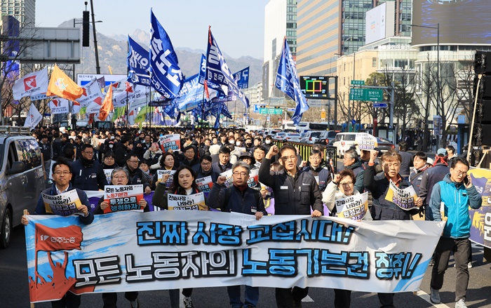 | '³ë¶õºÀÅõ¹ý'(³ëµ¿Á¶ÇÕ ¹× ³ëµ¿°ü°èÁ¶Á¤¹ý 2·3Á¶ °³Á¤ ¹ý·ü) ½ÃÇà ù³¯ÀÎ Áö³ 3¿ù 10ÀÏ ¼¿ï ¼¼Á¾·Î¿¡¼ ¿¸° ¹ÎÁÖ³ëÃÑ ÅõÀï ¼±Æ÷´ëȸ¿¡¼ Áýȸ¸¦ ¸¶Ä£ ¹ÎÁÖ³ëÃÑ Á¶ÇÕ¿ø µîÀÌ ÇàÁøÇϰí ÀÖ´Ù. /¿¬ÇÕ´º½º |