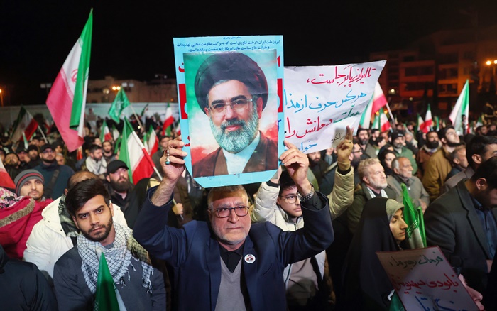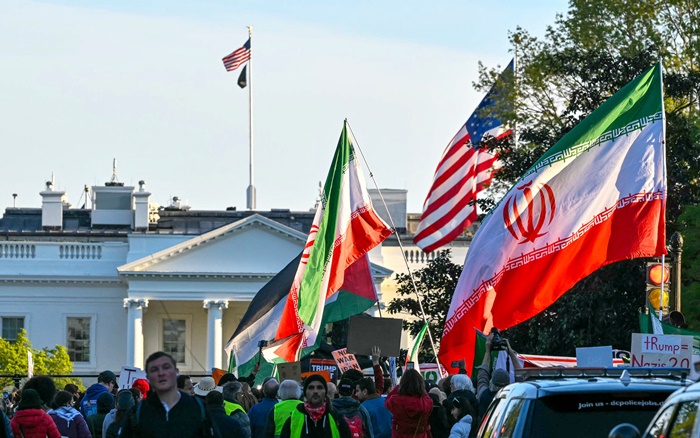 | ¹Ì±¹°ú À̶õÀÇ ÈÞÀü ¹ßÇ¥ ÀÌÈÄ À̶õÀεéÀÌ 8ÀÏ(ÇöÁö½Ã°£) À̶õ ¼öµµ Å×¶õ¿¡¼ À̶õ ÃÖ°íÁöµµÀÚ ¸ðÁ٠Çϸ޳×ÀÌ »çÁø°ú ±¹±â¸¦ µé°í °Å¸®·Î ³ª¼¹´Ù. /Å×Çì¶õ[À̶õ] EPA=¿¬ÇÕ´º½º |