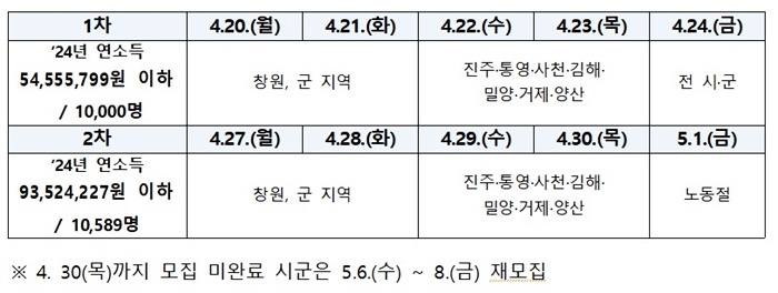 µµ´Â µµ¹Î¿¬±Ý °¡ÀÔ È¨ÆäÀÌÁö(°æ³²µµ¹Î¿¬±Ý.kr)¸¦ ÅëÇØ 1Â÷(20∼24ÀÏ)·Î ¿¬ ¼Òµæ 5,455¸¸¿ø ÀÌÇÏ µµ¹Î 1¸¸¸í, 2Â÷(27∼30ÀÏ)·Î ¿¬ ¼Òµæ 9,352¸¸¿ø ÀÌÇÏ µµ¹Î 1¸¸589¸íÀ» ¸ðÁýÇÑ´Ù.