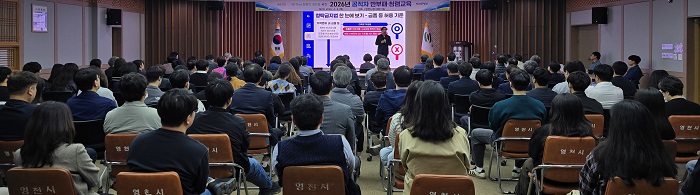[½Ã»çÄÚ¸®¾ÆÀú³Î=°æºÏÃëÀ纻ºÎ] ¿µÃµ½Ã´Â 9ÀÏ ½Ãû ´ëȸÀǽǿ¡¼ 5±Þ ÀÌ»ó °£ºÎ °ø¹«¿ø°ú ÃÖ±Ù ½ÂÁøÇÑ °øÁ÷ÀÚ µî 130¿© ¸íÀ» ´ë»óÀ¸·Î ‘°øÁ÷ÀÚ ¹ÝºÎÆÐ·Ã»·Å±³À°’À» ½Ç½ÃÇß´Ù.