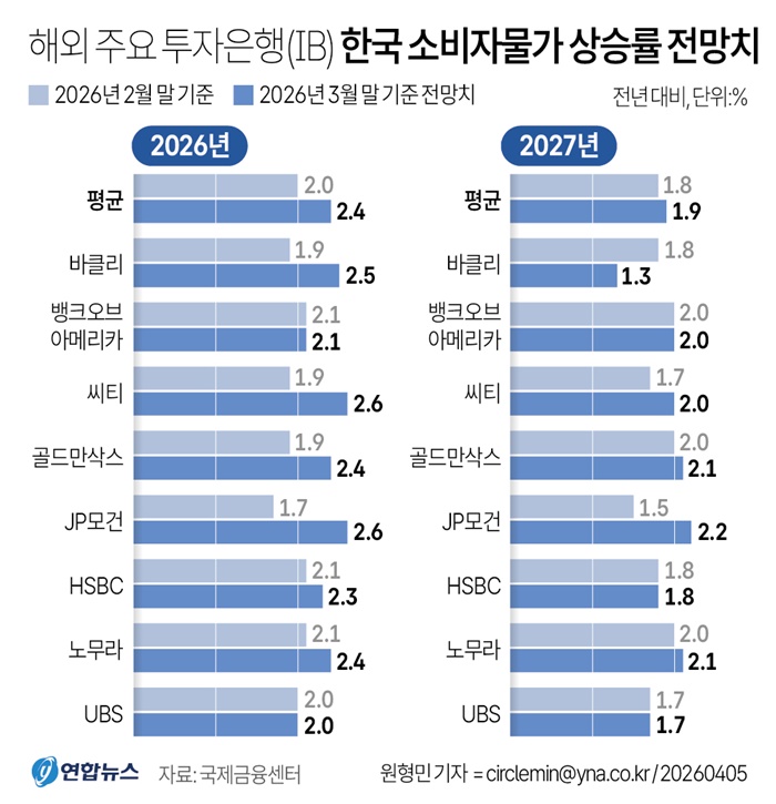 ±ÝÅëÀ§´Â ¹°°¡¿Í °ü·ÃÇØ "¼ÒºñÀÚ¹°°¡ »ó½Â·üÀº ±¹Á¦À¯°¡ »ó½ÂÀÇ ¿µÇâÀ¸·Î »ó¹æ ¾Ð·ÂÀÌ Å©°Ô È®´ëµÇ°ÚÁö¸¸ Á¤ºÎÀÇ ¹°°¡¾ÈÁ¤ ´ëÃ¥ÀÌ À̸¦ ÀϺΠ¿ÏÈÇÏ¸é¼ 2%´ë ÁßÈÄ¹Ý ¼öÁØÀ¸·Î ³ô¾ÆÁú °Í"À̶ó¸ç "ÀÌ¿¡ µû¶ó ¿ÃÇØ ¼ÒºñÀÚ¹°°¡ »ó½Â·üÀº Áö³ 2¿ù Àü¸ÁÄ¡(2.2%)¸¦ »ó´çÆø »óȸÇÏ°í ±Ù¿ø¹°°¡(¿¡³ÊÁö·½Äǰ Á¦¿Ü) »ó½Â·üµµ ´çÃÊ Àü¸Á(2.1%)º¸´Ù ´Ù¼Ò ³ô¾ÆÁú °Í"À̶ó°í Àü¸ÁÇß´Ù.