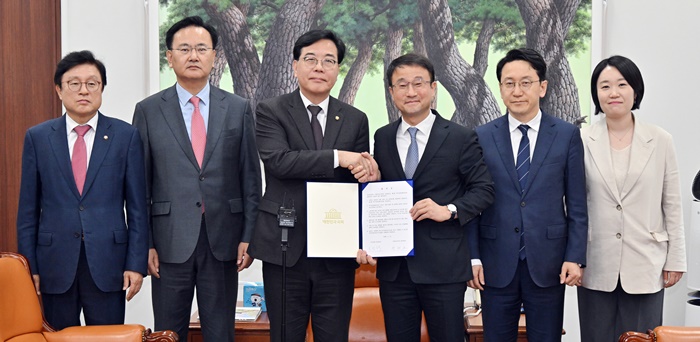 | ´õºÒ¾î¹ÎÁÖ´ç ÇѺ´µµ ¿ø³»´ëÇ¥¿Í ±¹¹ÎÀÇÈû ¼Û¾ð¼® ¿ø³»´ëÇ¥°¡ 10ÀÏ ±¹È¸¿¡¼ 2026³âµµ Á¦1ȸ Ãß°¡°æÁ¤¿¹»ê¾È ÇÕÀǹ®¿¡ ¼¸íÇÑ µÚ ±â³ä»çÁøÀ» Âï°í ÀÖ´Ù. /°øµ¿ÃëÀç |
