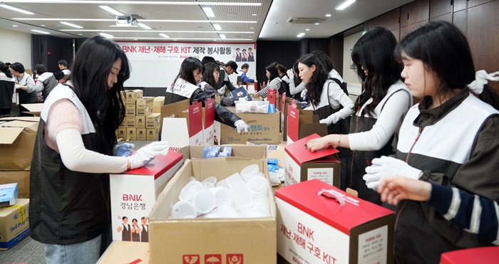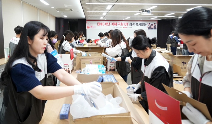 | BNK°æ³²ÀºÇà Á÷¿øµéÀÌ º»Á¡ ´©¸®¸¶´ç¿¡¼ ‘BNK À糤ýÀçÇØ ±¸È£ KIT’¸¦ Á¦ÀÛÇÏ´Â ºÀ»çȰµ¿¿¡ Âü¿©Çϰí ÀÖ´Ù. |