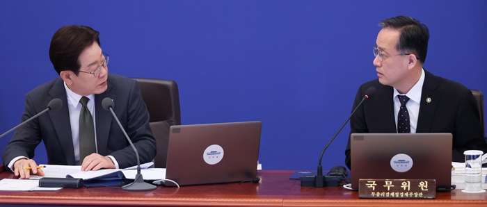 | ÀÌÀç¸í ´ëÅë·ÉÀÌ 14ÀÏ Ã»¿Í´ë¿¡¼ ¿¸° ±¹¹«È¸ÀÇ °â ºñ»ó°æÁ¦Á¡°ËȸÀÇ¿¡¼ ÀÌÇüÀÏ ÀçÁ¤°æÁ¦ºÎ Á¦1Â÷°ü¿¡°Ô Áú¹®Çϰí ÀÖ´Ù. /¿¬ÇÕ´º½º |