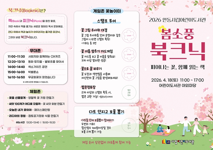[½Ã»çÄÚ¸®¾ÆÀú³Î=±è¿¬ÇÐ ±âÀÚ] ¾Èµ¿½Ã¸³¾î¸°À̵µ¼°ü¿¡¼´Â ¿À´Â 4¿ù 18ÀÏ(Åä) 11½ÃºÎÅÍ 17½Ã±îÁö ½Ã¹ÎÀÌ µµ¼°ü¿¡¼ ¸¶À½²¯ º½³îÀ̸¦ ÇÒ ¼ö ÀÖ´Â'ºÏÅ©´Ð(book+picnic)'Çà»ç¸¦ °³ÃÖÇÑ´Ù°í ¹àÇû´Ù.