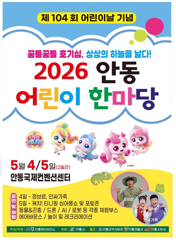 [½Ã»çÄÚ¸®¾ÆÀú³Î=±è¿¬ÇÐ ±âÀÚ] ¾Èµ¿½Ã¿Í ¾Èµ¿Ã»³âȸÀǼÒ(ȸÀå ¹ÚÁÖÇÏ)´Â Á¦104ȸ ¾î¸°À̳¯À» ¸Â¾Æ, 5¿ù 4ÀϺÎÅÍ 5¿ù 5ÀϱîÁö ÀÌÆ²°£ ¾Èµ¿±¹Á¦ÄÁº¥¼Ç¼¾ÅÍ¿¡¼ ‘2026 ¾Èµ¿ ¾î¸°ÀÌ ÇѸ¶´ç’À» °³ÃÖÇÑ´Ù°í ¹àÇû´Ù.