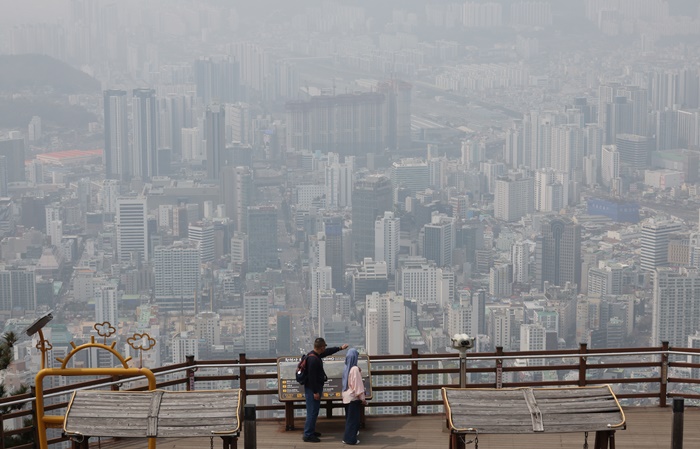 | ºÎ»ê Ȳ·É»ê Àü¸Á´ë(¼¸é¹æ¸é)¿¡¼ ¹Ù¶óº» µµ½ÉÀÌ »Ñ¿¸°Ô º¸ÀδÙ. /¿¬ÇÕ´º½º ÀÚ·á»çÁø |