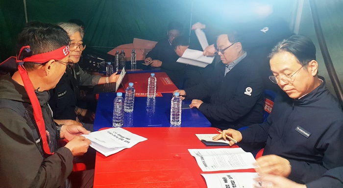 ¹ÎÁÖ³ëÃÑ °ø°ø¿î¼ö³ëÁ¶ ȹ°¿¬´ë 500¿©¸íÀº À̳¯ Àú³á ´Ê°Ô±îÁö Áýȸ¸¦ À̾¸ç Â÷ »ç°í·Î ¼ûÁø Á¶ÇÕ¿ø¿¡ ´ëÇØ BGF¸®Å×Àϰú °æÂûÀÌ Ã¥ÀÓÁö¶ó°í ¿ä±¸Çϰí ÀÖ´Ù.