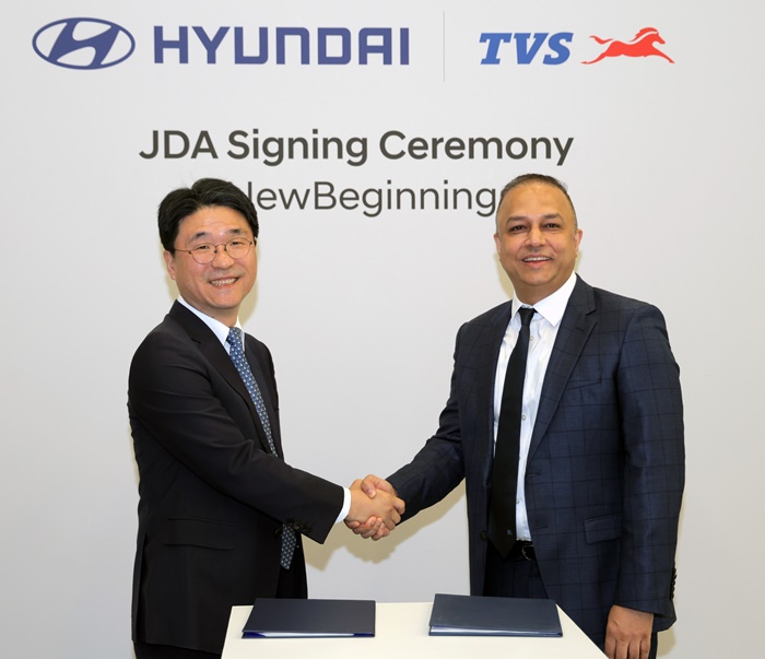 | 20ÀÏ(ÇöÁö½Ã°£) Àεµ µ¨¸®ÀÇ ¹Ù¶ù ¸¸´ÙÆÊ ÄÁº¥¼Ç ¼¾ÅÍ¿¡¼ ÀεµÀÇ 3·û Â÷·® »ý»ê¾÷üÀÎ TVS ¸ðÅÍ ÄÄÆÛ´Ï¿Í '3·û EVÀÇ °³¹ß ¹× »ó¿ëȸ¦ À§ÇÑ °øµ¿°³¹ßÇù¾à'À» ü°áÇÑ ÈÄ Âü¼®ÀÚµéÀÌ ±â³ä ÃÔ¿µÇϰí ÀÖ´Ù. /Çö´ëÀÚµ¿Â÷·±â¾Æ Á¦°ø |