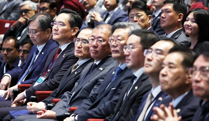 | ÀÌÀç¸í ´ëÅë·É Àεµ ±¹ºó ¹æ¹®À» °è±â·Î 20ÀÏ(ÇöÁö½Ã°£) ´ºµ¨¸® ¹Ù¶óÆ® ¸¸´ÙÆÊ ÄÁº¥¼Ç¼¾ÅÍ¿¡¼ ¿¸° ÇÑ-Àεµ ºñÁî´Ï½ºÆ÷·³¿¡ ÀÌÀç¿ë »ï¼ºÀüÀÚ È¸Àå, Á¤ÀǼ± Çö´ëÂ÷±×·ì ȸÀå, ±¸±¤¸ð LG±×·ì ȸÀå µî ±â¾÷ÀεéÀÌ Âü¼®ÇØ ÀÖ´Ù. /¿¬ÇÕ´º½º |
