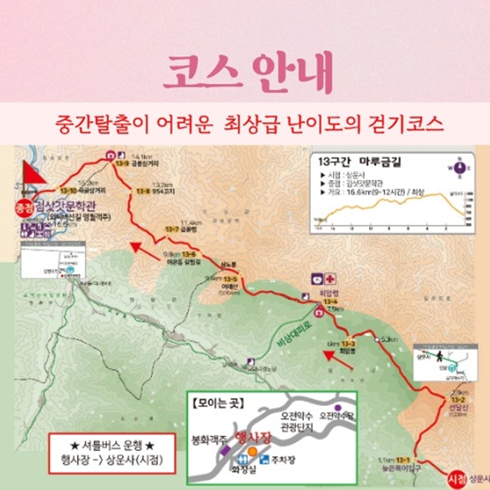 Çà»ç ù³¯ÀÎ 6¿ù 5ÀÏ(±Ý)¿¡´Â ¿Ü¾¾¹ö¼±±æ Áß ³À̵µ°¡ °¡Àå ³ôÀº ‘¸¶·ç±Ý±æ(13±æ)’ ±¸°£À» °È´Â´Ù. ¼ö·ÁÇÑ »ê¸² ´É¼±À» µû¶ó 16.6km¸¦ °È´Â 縰Áö ¼º°ÝÀÇ ÄÚ½º·Î, Æò¼Ò »êÇà °æÇèÀÌ Ç³ºÎÇÑ µî»ê ¾ÖÈ£°¡ 50¸íÀ» ¼±Âø¼øÀ¸·Î ¸ðÁýÇÑ´Ù.