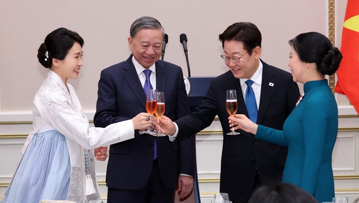 | ÀÌÀç¸í ´ëÅë·É°ú ±èÇý°æ ¿©»ç°¡ Áö³ÇØ 8¿ù 11ÀÏ Ã»¿Í´ë ¿µºó°ü¿¡¼ ¿¸° ÇÑ·º£Æ®³² °ø½Ä ¸¸Âù¿¡¼ ¶Ç ·³ º£Æ®³² ´ç ¼±âÀå ºÎºÎ¿Í °Ç¹èÇϰí ÀÖ´Ù. /¿¬ÇÕ´º½º ÀÚ·á»çÁø |