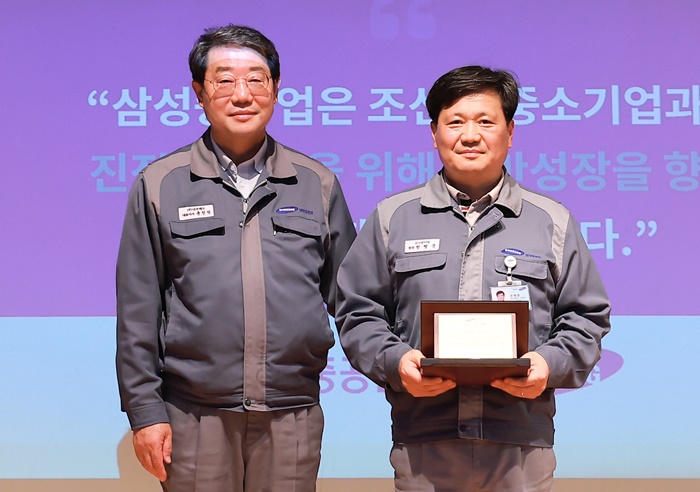 | »ï¼ºÁß°ø¾÷ Çù·Âȸ»ç ÇùÀÇȸ À±Áø¼® ȸÀå(»çÁø ÁÂÃø)ÀÌ »ï¼ºÁß°ø¾÷ õ¸íÁØ ±â¼ú¿¬¼ö¿øÀå(»çÁø ¿ìÃø)¿¡°Ô °¨»çÆÐ¸¦ Àü´ÞÇϰí ÀÖ´Ù. /»ï¼ºÁß°ø¾÷ Á¦°ø |