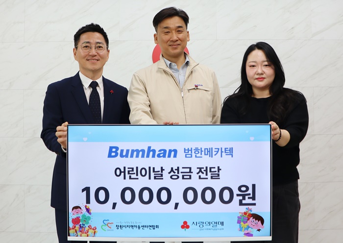 [½Ã»çÄÚ¸®¾ÆÀú³Î=ÀÌȯ¼ö ±âÀÚ] ¹üÇѸÞīŨ(ÁÖ)ÀÌ ´Ù°¡¿À´Â ¾î¸°À̳¯À» ¸Â¾Æ Áö¿ª ¾Æµ¿‧û¼Ò³âÀ» À§ÇØ 24ÀÏ °æ³²»çȸº¹Áö°øµ¿¸ð±Ýȸ(ȸÀå Á¤¿µ½Ä)¿¡ ¼º±Ý 1,000¸¸ ¿øÀ» Àü´ÞÇß´Ù.