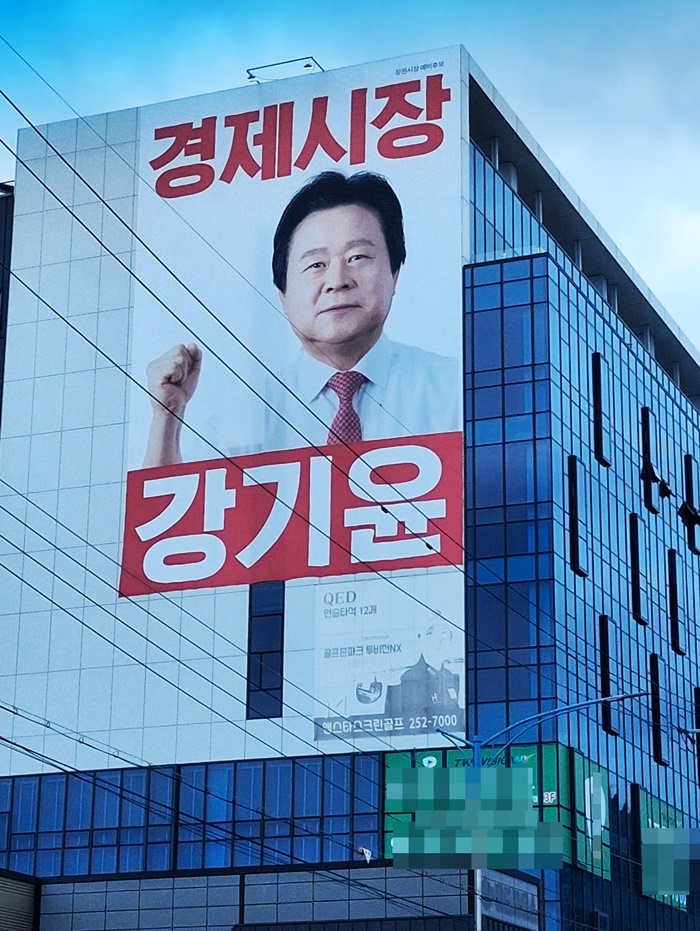 | °±âÀ± â¿ø½ÃÀå ±¹¹ÎÀÇÈû Èĺ¸ ¼±°Å»ç¹«¼Ò ¿Üº®¿¡ °É¸° ´ëÇü »çÁø |