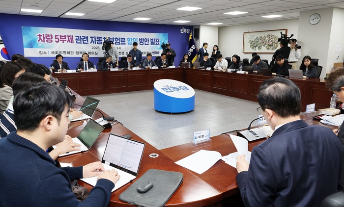 | ´õºÒ¾î¹ÎÁÖ´ç Áßµ¿»óȲ °æÁ¦ ´ëÀÀ Ưº°À§¿øÈ¸ ÁÖÃÖ·Î 27ÀÏ ±¹È¸ ÀÇ¿øÈ¸°ü¿¡¼ 'Â÷·®5ºÎÁ¦ °ü·Ã ÀÚµ¿Â÷º¸Çè·á ÇÒÀÎ ¹æ¾È ¹ßÇ¥'¸¦ Çϰí ÀÖ´Ù. /¿¬ÇÕ´º½º |