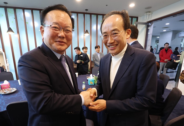 ±è Àü ÃѸ®¿Í Ãß ÀÇ¿øÀº ¾çÀÚ ´ë°á¿¡ µé¾î¼± À̳¯ °¢±â ´Ù¸¥ Çຸ¿¡ ³ª¼¸ç ÁöÁö¸¦ È£¼ÒÇß´Ù.