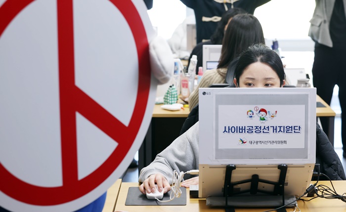 | Á¦9ȸ Àü±¹µ¿½ÃÁö¹æ¼±°Å°¡ 100ÀÏ ¾ÕÀ¸·Î ´Ù°¡¿Â 23ÀÏ ¿ÀÈÄ ´ë±¸±¤¿ª½Ã¼±°Å°ü¸®À§¿øÈ¸¿¡¼ »çÀ̹ö °øÁ¤¼±°ÅÁö¿ø´Ü¿ø 20¿©¸íÀÌ ±¹³»¿Ü ÀÎÅÍ³Ý È¨ÆäÀÌÁö ¹× SNS µî ¿Â¶óÀο¡¼ÀÇ ¼±°Å¹üÁË ¿¹¹æ·¾È³» ¹× ´Ü¼Ó Ȱµ¿À» Çϰí ÀÖ´Ù. /¿¬ÇÕ´º½º |
