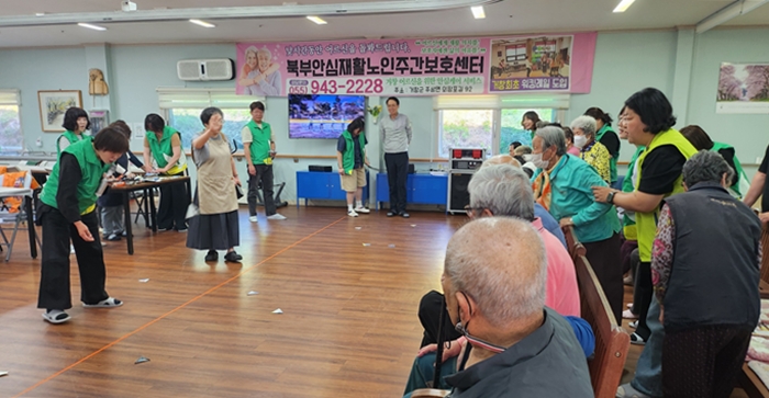 [½Ã»çÄÚ¸®¾ÆÀú³Î=Á¤Á¾¹Î ¼±ÀÓ±âÀÚ] °ÅâÇÑû³â»õ¸¶À»¿¬´ë(ȸÀå ±èÈ«¹Î)´Â Áö³ 25ÀÏ ¼Ò¼Ó ȸ¿ø 10¿© ¸íÀÌ °ü³» ºÏºÎ¾È½É³ëÀÎ ÁÖ°£º¸È£¼¾Å͸¦ ¹æ¹®ÇØ ¾î¸£½Åµé°ú ÇÔ²² Á¦Ã¶ À½½ÄÀÎ ¾¦ÀÎÀý¹Ì¸¦ Á÷Á¢ ¸¸µé°í ³ª´©´Â üÇè ºÀ»çȰµ¿À» ÁøÇàÇß´Ù°í ¹àÇû´Ù.