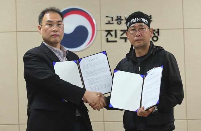 [½Ã»çÄÚ¸®¾ÆÀú³Î=Á¤Á¾¹Î ¼±ÀÓ±âÀÚ] ¼ûÁø Á¶ÇÕ¿øÀÇ ¸í¿¹È¸º¹ °ü·Ã ³»¿ëÀ» µÎ°í ¸·ÆÇ±îÁö ÆØÆØÇÑ Áٴٸ®±â¸¦ À̾¸ç ÇÕÀǼ Á¶ÀνÄÀ» ¿¬±âÇß´ø ¹ÎÁÖ³ëÃÑ °ø°ø¿î¼ö³ëÁ¶ ȹ°¿¬´ëº»ºÎ(ÀÌÇÏ È¹°¿¬´ë)¿Í BGF·ÎÁö½º°¡ 30ÀÏ Á¶ÀνĿ¡¼ Ÿ°áÇÑ ÇÕÀÇ´Â ¹°·ù¾÷°èÀÇ »ó»ý ¸ðµ¨À» Á¦½ÃÇß´Ù´Â Á¡¿¡¼ »ó´çÇÑ Àǹ̸¦ Áö´Ñ´Ù.