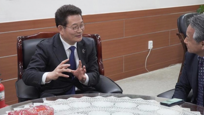 | ´õºÒ¾î¹ÎÁÖ´ç â³ç°æÁ¦´ëÃ¥À§¿øÈ¸ ¹èÈ¿¹® À§¿øÀå(¿À¸¥ÂÊ)ÀÌ 3ÀÏ ¼Û¿µ±æ ´ëÅë·Â Á÷¼Ó ºÏ¹æ°æÁ¦Çù·ÂÀ§¿øÈ¸ À§¿øÀå(¿ÞÂÊ)°ú Åä·ÐÀ» Çϰí ÀÖ´Ù. |