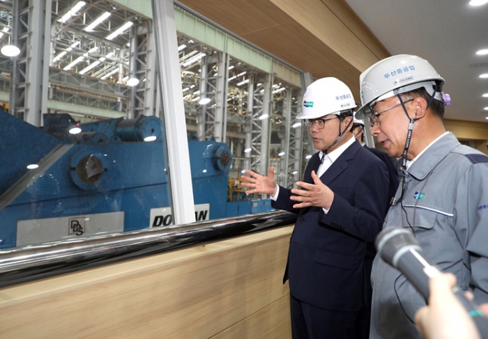 | Ç㼺¹« â¿ø½ÃÀåÀÌ ±è¸í¿ì »çÀåÀÇ ¾È³»·Î µÎ»êÁß°ø¾÷ÀÇ ÁÖ¿ä »ý»êÇöÀåÀ» ÀÚ¼¼È÷ µÑ·¯º¸°í ÀÖ´Ù. |