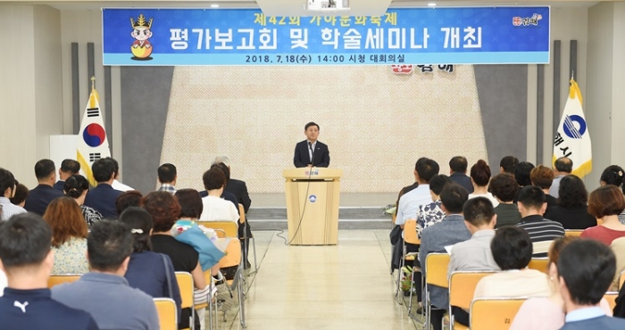 [½Ã»çÄÚ¸®¾ÆÀú³Î=Àå±â¿µ ±âÀÚ] ±èÇØ½Ã´Â Áö³ 4¿ù 27ÀϺÎÅÍ 5¿ù 1ÀϱîÁö 5Àϰ£ °³ÃÖµÈ 'Á¦42ȸ °¡¾ß¹®ÈÃàÁ¦' Æò°¡º¸°íȸ ¹× Çмú¼¼¹Ì³ª¸¦ 18ÀÏ ¿ÀÈÄ 2½Ã ½Ãû ´ëȸÀǽǿ¡¼ ÃàÁ¦°ü°èÀÚ, ÀÚ¿øºÀ»çÀÚ µî 200¿©¸íÀÌ Âü¼®ÇÑ °¡¿îµ¥ °³ÃÖÇß´Ù.