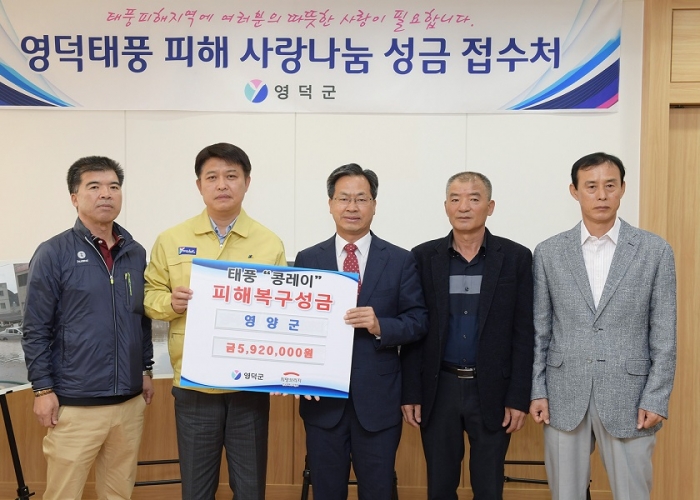 [½Ã»çÄÚ¸®¾ÆÀú³Î ±è¿¬ÇÐ ±âÀÚ] ¿µ¾ç±º(±º¼ö ¿ÀµµÃ¢)Àº 15ÀÏ ¿µ¾ç±ºÀÌÀåÇùÀÇȸ(ȸÀå ±èÃ¢ÈÆ) ¹× ¿µ¾ç±ºÃ¼À°È¸(»óÀÓºÎȸÀå ÀÌÀçÃá) ÀÓ¿ø°ú ÇÔ²² ¿µ´ö±ºÃ»À» ¹æ¹®ÇÏ¿© ÅÂdz Äá·¹ÀÌ·Î ÀÎÇØ Å« ÇÇÇØ¸¦ ÀÔÀº ¿µ´ö±º ÁֹεéÀ» µ½±â À§ÇÑ ¼º±Ý 592¸¸ ¿øÀ» Àü´ÞÇß´Ù.