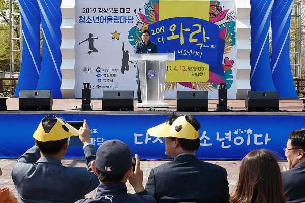 [½Ã»çÄÚ¸®¾ÆÀú³Î À̵¿¿ì ±âÀÚ] °æÁֽÿ¡¼ û¼Ò³âµéÀÌ ÁÖµµÀûÀ¸·Î Âü¿©ÇØ ¸¸µé¾î°¡´Â ‘2019³â °æ»óºÏµµ ´ëÇ¥ û¼Ò³â¾î¿ï¸²¸¶´ç’ °³¸· °øµ¿ ¼±Æ÷½ÄÀÌ Áö³ 13ÀÏ ÁÖ³«¿µ °æÁÖ½ÃÀåÀ» ºñ·ÔÇØ 2,000¿©¸íÀÌ Âü¼®ÇÑ °¡¿îµ¥ °æÁÖ È²¼º°ø¿ø ŸÀÓĸ½¶ °ø¿ø ¿· »ó¼³¹«´ë¿¡¼ ¼±Æ÷½Ä°ú °æºÏ û¼Ò³â¹®ÈÀÇ ´ëÇ⿬ÀÌ ½ÃÀ۵ƴÙ.