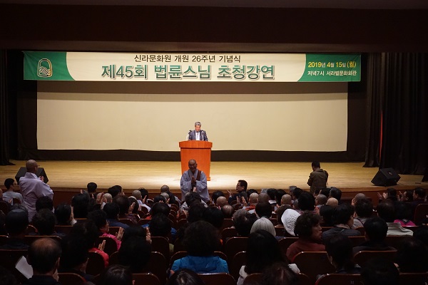 800¿©¸íÀÌ ¼¶ó¹ú¹®Èȸ°ü ´ë°´ç 1, 2ÃþÀ» °¡µæ ä¿î ä ÁøÇàµÈ À̳¯ Çà»ç´Â 1ºÎ ½Å¶ó¹®È¿ø °³¿ø 26Áֳ⠱â³ä½Ä¿¡ ÀÌ¾î ¹ý·û½º´ÔÀÌ <Çѹݵµ ÆòȰøÁ¸ÀÇ ÁöÇý>¶ó´Â ÁÖÁ¦·Î ½Å¶ó°¡ »ïÇÑÀÏÅëÀ» ÀÌ·ê¼ö ÀÖ¾ú´ø ´Ù¾çÇÑ »ç·ÊµéÀ» ¿À´Ã³¯ ³²ºÏºÐ´Ü Çö½Ç°ú ºñ±³ÇÏ¸é¼ ºÒ±³Àû ÁöÇý·Î ÆòÈÅëÀÏ ÇØ¹ýÀ» ã¾Æº¸´Â ¹æ¾ÈÀ» Á¦½ÃÇØ Âü¼®ÀÚµéÀÇ °ø°¨´ë¸¦ À̲ø¾î ³Â´Ù.