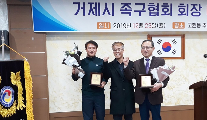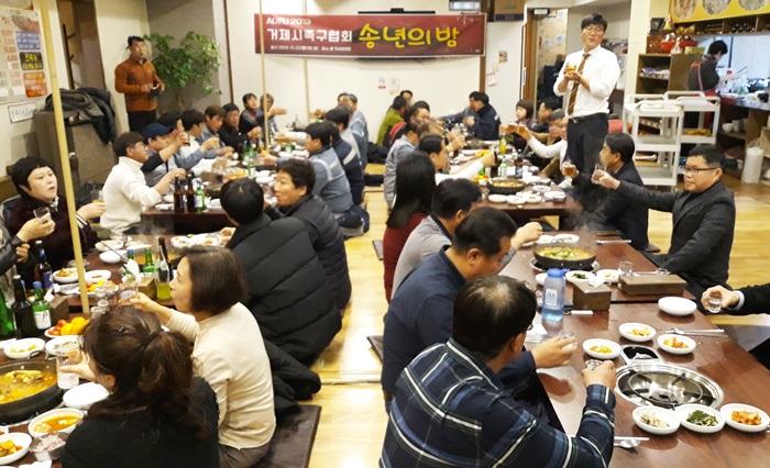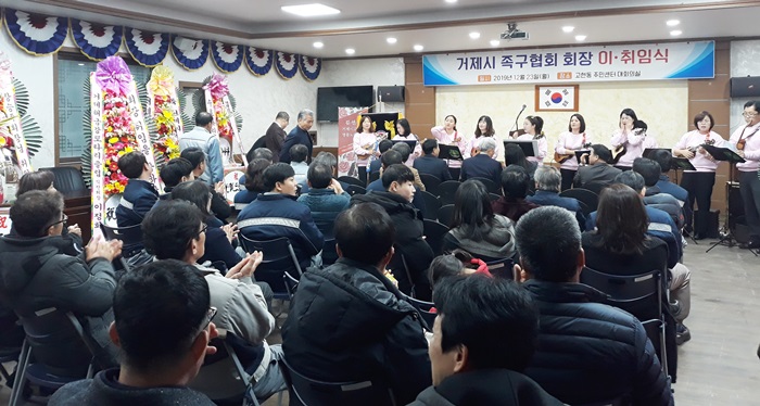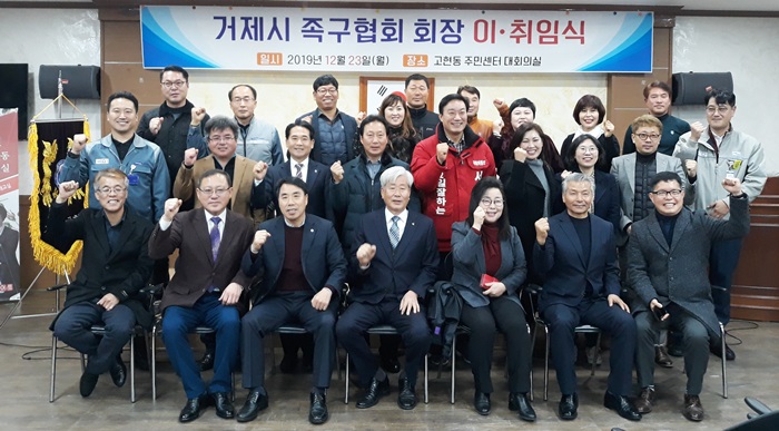 [½Ã»çÄÚ¸®¾ÆÀú³Î=ÀÌȯ¼ö ±âÀÚ] °ÅÁ¦½Ã Á·±¸Çùȸ ȸÀå ÀÌ·ÃëÀÓ½Ä(ÀÌÀÓȸÀå ÀÌÀÎ±Ô · ÃëÀÓȸÀå Àå½ÂÁÖ)ÀÌ 23ÀÏ ¿ÀÈÄ 6½Ã °ÅÁ¦½Ã °íÇöµ¿ ÁÖ¹ÎÀÚÄ¡¼¾ÅÍ ´ëȸÀǽǿ¡¼ °æ³² ¹× °ÅÁ¦Áö¿ª °æ±â´Üü ȸÀå ¹× ÀÓ¿ø, Á·±¸Çùȸ ȸ¿ø µî 150¿©¸íÀÌ Âü¼®ÇÑ °¡¿îµ¥ ¿·È´Ù.