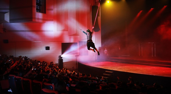 ¹«¾ùº¸´Ù ¹è¿ì°¡ õÀå¿¡ ¿¬°áµÈ ¿ÍÀ̾ Ÿ°í ¹«´ë¿Í °´¼® À§¸¦ ³¯¾Æ´Ù´Ï´Â Àå¸éÀº ÀÎÇÇ´ÏÆ¼ ÇöóÀ× °ø¿¬¿¡¼¸¸ º¼ ¼ö ÀÖ´Â ¿ªµ¿ÀûÀÎ °¨µ¿ÀÇ ±ØÄ¡¸¦ º¸¿©ÁØ´Ù.