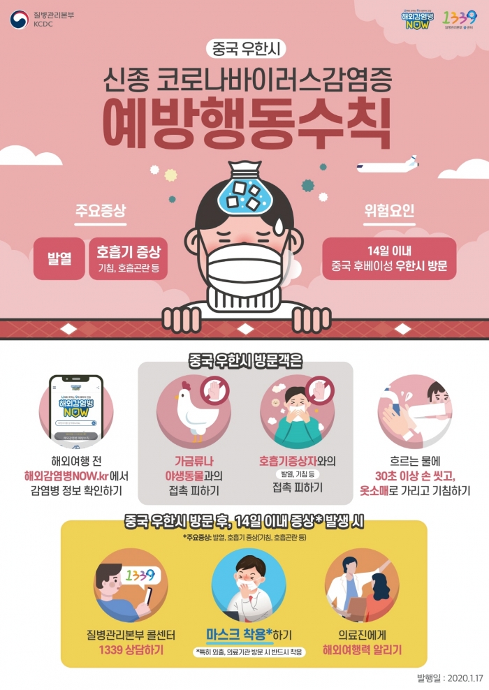 ±ºº¸°Ç¼Ò °ü°èÀÚ´Â Áß±¹ ¹æ¹® ½Ã µ¿¹°(°¡±Ý·ù Æ÷ÇÔ)Á¢ÃËÀ» ÇÇÇϰí ÀüÅë½ÃÀå ¹æ¹®°ú ºÒÇÊ¿äÇÑ ÀÇ·á±â°ü ¹æ¹®À» ÀÚÁ¦ÇÒ °ÍÀ» ´çºÎÇß´Ù. ƯÈ÷ ÇØ¿Ü¿©Çà ÈÄ ¹ß¿, ±âħ, ¼û °¡»Ý µî È£Èí±â Áõ»óÀÌ ÀÖÀ» °æ¿ì Áúº´°ü¸®º»ºÎ Äݼ¾ÅÍ(1339)·Î ¿¬¶ôÇØ »ó´ãÀ» ¹Þ´Â °ÍÀÌ ÁÁ´Ù. ¶Ç È£Èí±â Áõ»óÀ¸·Î ÀÇ·á±â°üÀ» ¹æ¹®ÇÒ °æ¿ì °¡±ÞÀû ¸¶½ºÅ©¸¦ Âø¿ëÇϰí ÀÇ·áÁø¿¡°Ô ÇØ¿Ü¿©Çà »ç½ÇÀ» ¹Ýµå½Ã ¾Ë·Á¾ß ÇÑ´Ù.