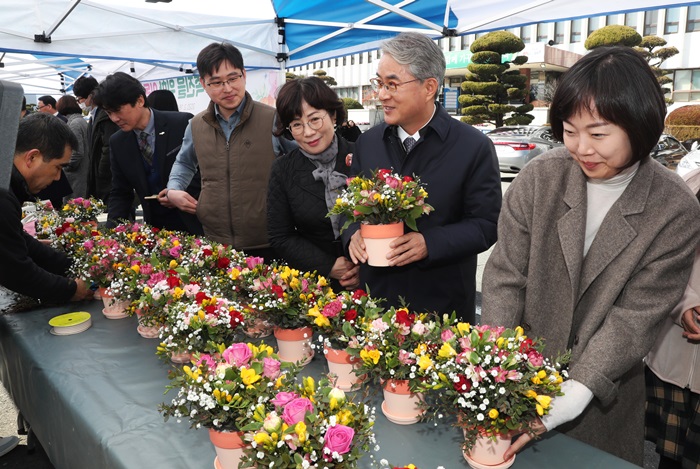 [½Ã»çÄÚ¸®¾ÆÀú³Î=±èÈñ¿µ ±âÀÚ] °æ³²±³À°Ã»ÀÌ 18ÀÏ µµ±³À°Ã» ÁÖÂ÷Àå¿¡¼ ÈÈÑ·ù ¼Òºñ ÃËÁøÀ» À§ÇÑ ²É ½ÃÀåÀ» ¿î¿µÇß´Ù.