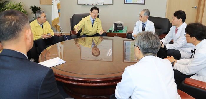 | ±è°æ¼ö °æ³²Áö»ç´Â 19ÀÏ ÁøÁֽà ¼ÒÀç °æ»ó´ëÇб³º´¿øÀ» ¹æ¹®, “´ë±¸¿¡¼ Ãß°¡ È®ÁøÀÚ°¡ ´ë°Å È®ÀÎµÈ »óÅ¿¡¼ °æ³² À¯ÀÔÀ» öÀúÈ÷ Â÷´ÜÇØ ´Þ¶ó"°í ´çºÎÇß´Ù. |