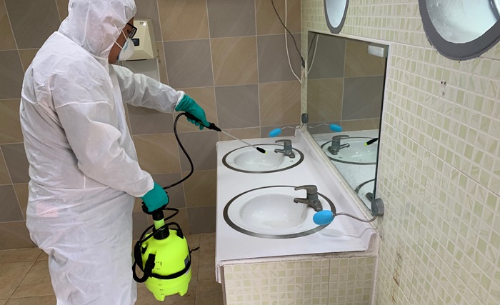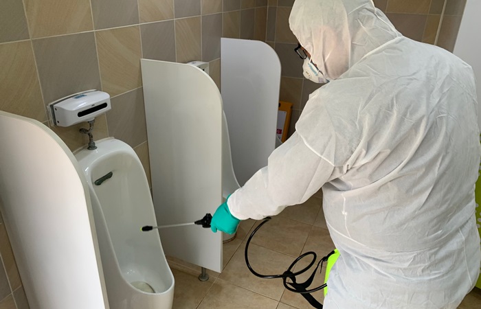 °øÁßÈÀå½Ç û¼Ò ÈÄ º¯±â, ¼¼¸é´ë, ¹Ù´Ú, °øÁßÈÀå½Ç ¿ÜºÎ µî¿¡ ¼Òµ¶Á¦ ºÐ»ç ÈÄ Ç¥¸éÀ» ¸¶¸¥ °É·¹·Î ´Û¾Æ ¼Òµ¶ÇÑ´Ù.