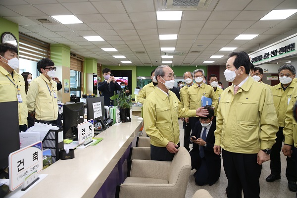 [½Ã»çÄÚ¸®¾ÆÀú³Î À̵¿¿ì ±âÀÚ] Á¤¼¼±Õ ±¹¹«ÃѸ®°¡ 2¿ù 27ÀÏ ¿ÀÀü Áö¿ª»çȸ¿¡ Äڷγª¹ÙÀÌ·¯½º°¨¿°Áõ-19(Äڷγª19) ¹ß»ýÀ¸·Î ¾î·Á¿òÀ» °Þ°í ÀÖ´Â °æºÏ ûµµ±ºÀ» ¹æ¹®ÇÏ¿© ±ºÀÇ Á¾ÇÕ»óȲ°ú Áö¿ø ÇÊ¿ä»çÇ× µîÀ» Á¡°ËÇϰí, ±ºÃ»¿¡ ¼³Ä¡µÈ ¹üÁ¤ºÎƯº°´ëÃ¥Áö¿ø´ÜÀ» ¹æ¹®ÇÏ¿© Á÷¿øµéÀ» °Ý·ÁÇÏ¿´À¸¸ç, 1Ãþ ¹Î¿ø½ÇÀ» ¹æ¹®ÇÏ¿© Äڷγª Á¾½ÄÀ» À§ÇØ ÃÖ¼±À» ´ÙÇϴ ûµµ±ºÃ» Á÷¿øµéÀ» À§·ÎÇß´Ù°í ¹àÇû´Ù.