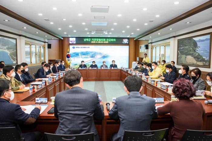 À̳¯ °£´ãȸ¿¡´Â ³²ÇؽÃÀå»óÀÎȸ¿Í ¼Ò»ó°øÀο¬ÇÕȸ³²ÇرºÁöȸ, ³²Çرº»ó°øÇùÀÇȸ ÀÓ¿øµéÀÌ Âü¼®ÇÑ °¡¿îµ¥ Áö¿ª°æÁ¦ÀÇ À§±â¸¦ ±Øº¹Çϱâ À§ÇÑ ´Ù¾çÇÑ ´ëÃ¥¿¡ ´ëÇØ ³íÀÇÇß´Ù.