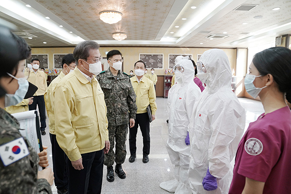 [½Ã»çÄÚ¸®¾ÆÀú³Î ±è¿¬ÇÐ ±âÀÚ] ¹®ÀçÀÎ ´ëÅë·ÉÀº 2ÀÏ ´ë±¸·°æºÏ Áö¿ªÀÇ Äڷγª19 ȯÀÚ Ä¡·á Áö¿øÀ» À§ÇØ ±¹°¡ °¨¿°º´ Àü´ãº´¿øÀ¸·Î ÀüÈ¯ÇØ ¿î¿µ ÁßÀÎ ±¹±º´ëÀüº´¿øÀ» ¹æ¹®Çß´Ù.