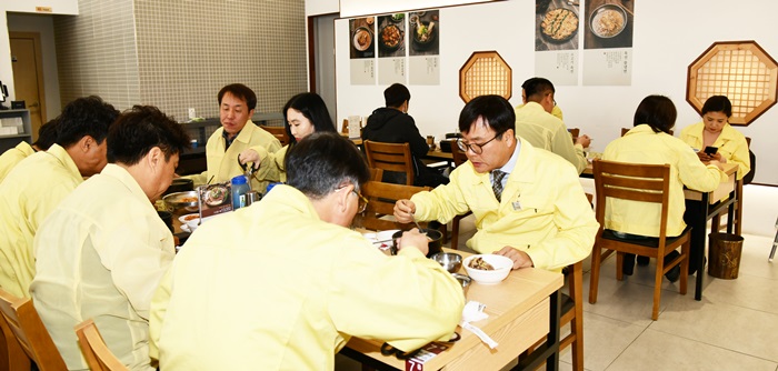 | º¯±¤¿ë °ÅÁ¦½ÃÀåÀº 5ÀÏ Á÷¿øµé°ú ÇÔ²² °ü³» È®ÁøÀÚ°¡ ´Ù³à°£ °÷À¸·Î ¾Ë·ÁÁ³´ø »óµ¿µ¿ ¼ÒÀç ½Ä´çÀ» ã¾Æ Á¡½ÉÀ» ¸ÔÀº µÚ, Á÷¿øµé°ú ÇÔ²² ÁÖÀÎÀ» ÀÀ¿øÇϰí ÀÖ´Ù. |