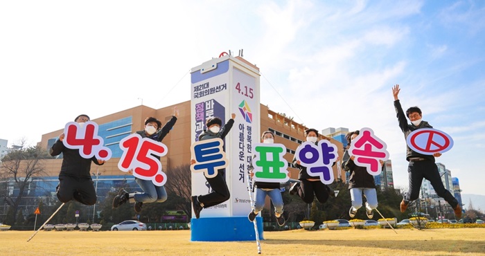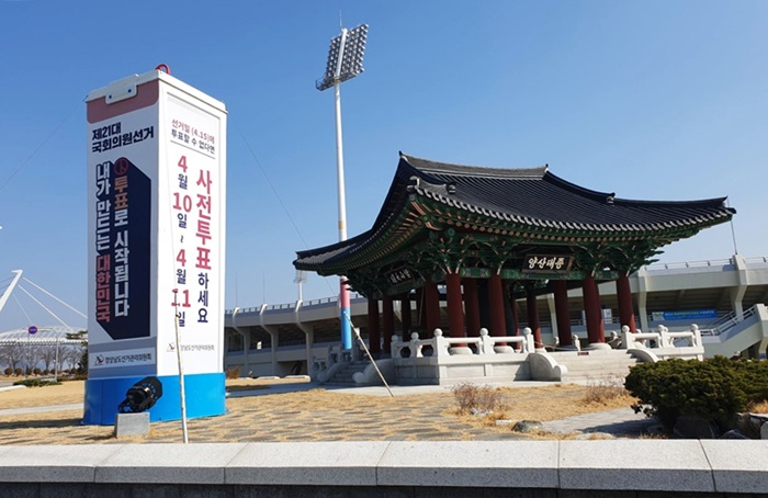 [½Ã»çÄÚ¸®¾ÆÀú³Î=±èÈñ¿µ ±âÀÚ] ¿À´Â 4¿ù 15ÀÏ Ä¡·¯Áö´Â Á¦21´ë ±¹È¸ÀÇ¿ø ¼±°Å ºÐÀ§±â°¡ Äڷγª19 »çÅ·Π°¡¶ó¾ÉÀº °¡¿îµ¥ °æµµ¼±°Å°ü¸®À§¿øÈ¸°¡ ¼±°ÅÀÏÀ» ¾Ë¸®°í ÅõÇ¥ Âü¿©¸¦ µ¶·ÁÇÏ´Â ´ëÇü¼±ÀüžÀ» ¼³Ä¡Çß´Ù.