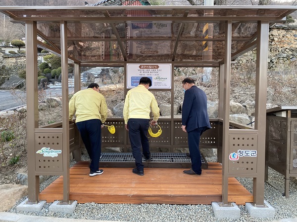 [½Ã»çÄÚ¸®¾ÆÀú³Î À̵¿¿ì ±âÀÚ] ûµµ±º ûµµÀ¾(±º¼ö À̽ÂÀ²)Àº ÁֹεéÀÇ ÄèÀûÇÑ Á¤ÁÖ¿©°Ç Á¶¼ºÀ» À§ÇØ ÁֹεéÀÌ Áñ°Ü ã´Â º¸Çö»ç ¾Õ ÇâÁ¤½°ÅÍ ³»¿¡ Èë¸ÕÁö¸¦ Åо ¼ö ÀÖµµ·Ï ¿¡¾î°Ç(Èë¸ÕÁöÅÐÀ̱â)¸¦ ¼³Ä¡Çß´Ù°í ¹àÇû´Ù.