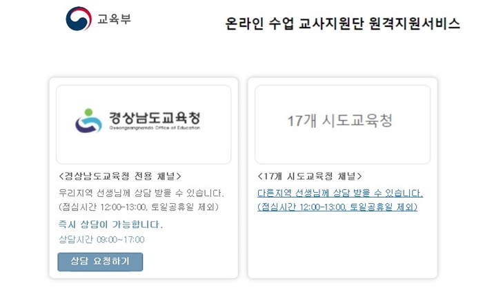 [½Ã»çÄÚ¸®¾ÆÀú³Î=±èÈñ¿µ ±âÀÚ] °æ³²±³À°Ã»Àº À̹ø Äڷγª19·Î ÀÎÇØ °³ÇÐÀÌ ¿¬±âµÇ°í Áö¿ªº° Çб³ÀÇ ´ë¸é ±³À°ÀÌ ¾î·Á¿î »óȲÀ» ´ëºñ, ¿Â¶óÀÎ ÇнÀ ±³»çÁö¿ø´Ü‘±³»ç¿Â(è®)’¿ø°ÝÁö¿ø ¼ºñ½º¸¦ ¿î¿µÇÑ´Ù.