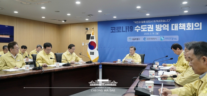 ¹® ´ëÅë·ÉÀº À̳¯ ¿ÀÈÄ ‘Äڷγª19 ¼öµµ±Ç ¹æ¿ª ´ëåȸÀÇ’¸¦ ÁÖÀç, “¼öµµ±Ç¿¡¼ Äݼ¾ÅÍ, ±³È¸, º´¿ø, PC¹æ µîÀÇ Áý´Ü °¨¿° »ç·Ê·Î ÀÎÇØ ±äÀåÀÇ ²öÀ» Á¶±Ýµµ ³õÀ» ¼ö ¾ø´Â »óȲ”À̶ó¸ç À̰°ÀÌ ¸»Çß´Ù.