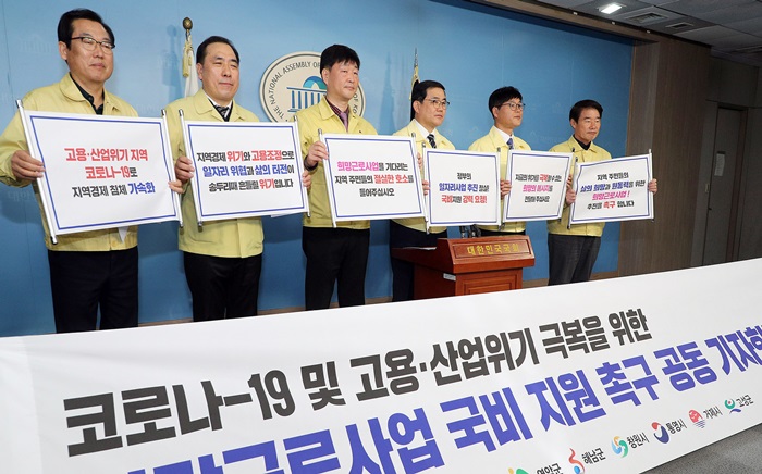 [½Ã»çÄÚ¸®¾ÆÀú³Î=Á¤Á¾¹Î ¼±ÀÓ±âÀÚ] Ç㼺¹« â¿ø½ÃÀå°ú º¯±¤¿ë °ÅÁ¦½ÃÀå µîÀÌ 17ÀÏ ¼¿ï ±¹È¸ Á¤·Ð°ü¿¡¼ 9°³ °í¿ë·»ê¾÷À§±âÁö¿ª ÀÚÄ¡´ÜüÀåÀÇ °øµ¿¸íÀÇ·Î ‘Èñ¸Á±Ù·Î Ã߰濹»ê¾È’ÀÇ ±¹ºñ ¹Ý¿µÀ» Ã˱¸ÇÏ´Â °ÇÀǹ®À» ¹ßÇ¥Çß´Ù.